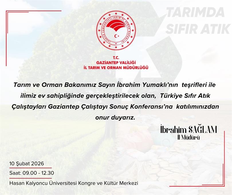 10 Şubat 2026 Tarihinde İlimizde düzenlenecek olan "Türkiye Sıfır Atık Çalıştayı"na davetlisiniz.