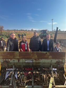 Oğuzeli İlçesi Yakacık Köyünde GAP Tarımsal Araştırma Enstitüsü tarafından geliştirilen yeni çeşitlerden makarnalık CUDİ63 çeşidi 10 dekar olmak üzere, ekmeklik SERİNCE çeşidi 10 dekar olmak üzere 15/12/2025 tarihinde Gaziantep İl Tarım ve Orman Müdürlüğü Koordinasyon ve Tarımsal Veriler Şube Müdürü Dr. Hafize HASAR ve Oğuzeli İlçe Tarım ve Orman Müdürü Ali Kemal KÖK ile teknik personeller ve çiftçilerimizin katılımlarıyla ekimi gerçekleştirilmiştir.