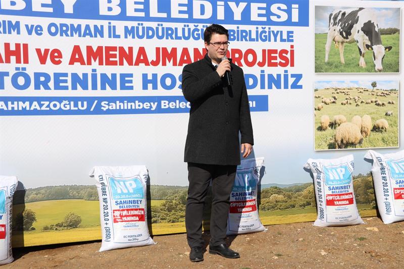 İl Müdürlüğümüz ile Şahinbey Belediyesi tarafından ortak yürütülen mera ıslah ve amenajman projesi kapsamında Şahinbey ilçesi mahallelerinde meraları gübreleme töreni, İl Müdürlüğümüz İbrahim SAĞLAM ve Şahinbey Belediye Başkanı Mehmet TAHMAZOĞLU'nun katılımıyla gerçekleştirildi.